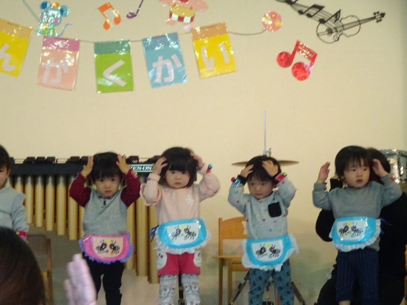 練習の際には緊張し、先生に抱っこを求める姿もありましたが、当日はピアノの音を聞きリズムに合わせて踊ることが出来ました。