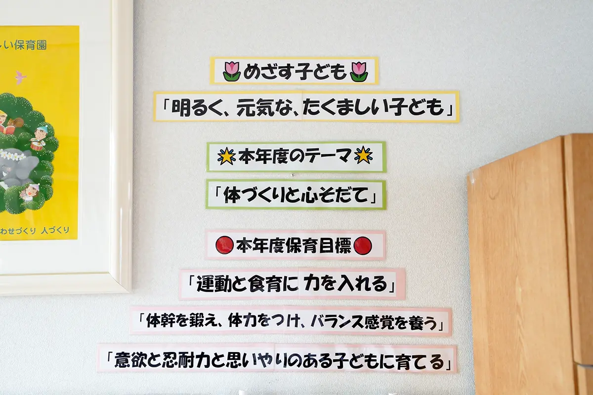保育園にかかわる子ども・保護者・地域・職員すべての人々のしあわせづくりと人格形成を行い、