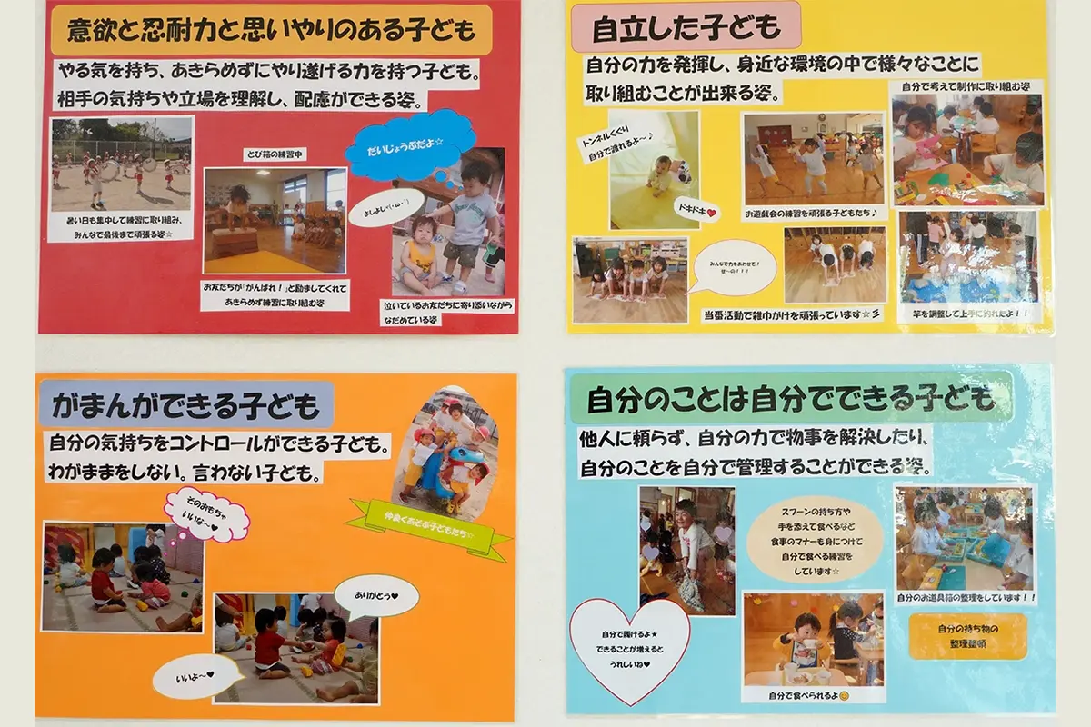 - 意欲と忍耐力と思いやりのある子どもに育てる。